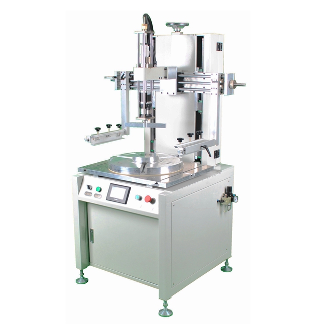 針對印刷面下凹的圓盤形產品,普通的絲印機平移運動的刮刀無法完成印刷。